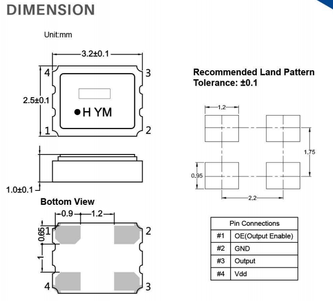 25MHZ晶體振蕩器,加高HSO321S晶振,SSW025000I3CHE-ST7R2 尺寸圖