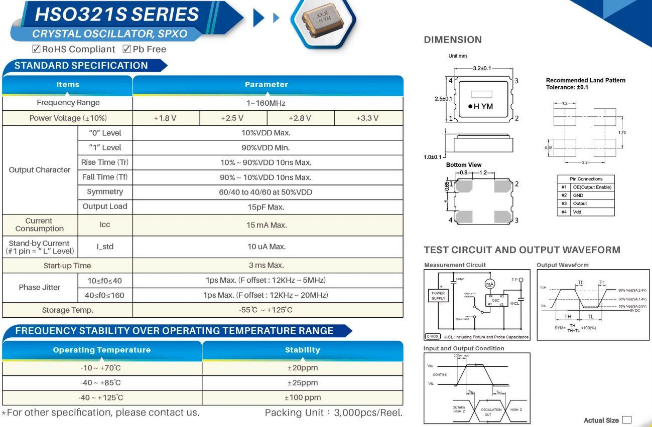 25MHZ晶體振蕩器,加高HSO321S晶振,SSW025000I3CHE-ST7R2 參數表