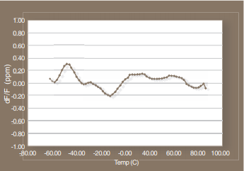 圖3.頻率與溫度的關(guān)系為20HzTCXO,間隔2°C.