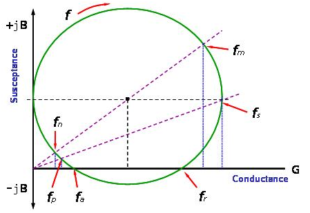 諧振頻率及反諧振頻率, fr and fa , 分別是當電導等于零(純電阻特性)的二個頻率. 在這個時候, fr 的阻抗為 1 / Rr 而fa 的阻抗為 1/ Ra. 在評估共振時的等效線路時, 串聯諧振頻率及并聯諧振頻率, fs and fp , 是最重要的二個頻率參數. 對于串聯諧振頻率及并聯諧振頻率( fs and fp )二者的關系, 我們可以用下列公式來表達: