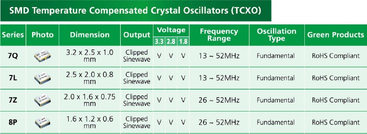 石英晶振7Q,TXC溫補晶振,環保貼片晶振溫補晶振(TCXO)產品本身具有溫度補償作用,高低溫度穩定性:頻率精度高0.5 PPM?2.0 PPM,工作溫度范圍: - 30度?85度,電源電壓:1.8V?3.3V之間可供選擇,產品本身具有溫度電壓控制功能,世界上最薄的晶振封裝,頻率:26兆赫,33.6兆赫,38.4兆赫,40兆赫,因產品性能穩定,精度高等優勢,被廣泛應用到一些比較高端的數碼通訊"7Q-24.000MBN-T"產品領域,GPS全球定位系統,智能手機,WiMAX和蜂窩和無線通信等產品,符合RoHS/無鉛.rystal,石英晶振應用:數碼相機,無線通訊,計算機,接口卡,電話,傳呼機,遙控器,全球定位系統,MP3,MP4,MP5數碼產品系列.