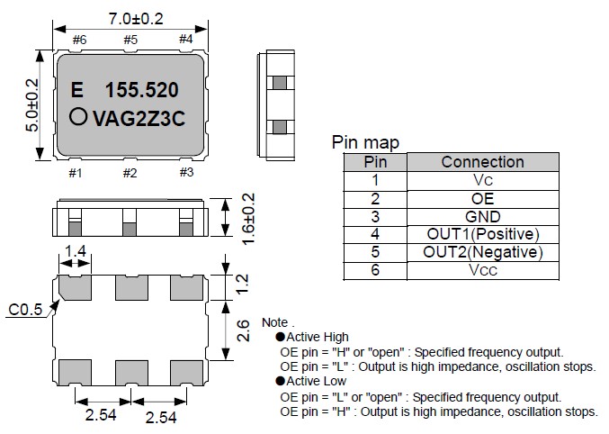 振蕩器VG-4512CA,六腳有源晶振,高頻晶振輸出頻率60 MHz到200 MHz之間,“VG-4512CA 125.0000M-GGCT0”出色的低相位噪聲和抖動,三態功能,應用:SDH/ SONET,以太網,基站,筆記本晶振應用, VCXO,壓控晶體應用:調制解調器,ADSL網絡控制器,無線基站,程控交換設備智能手機,筆記本晶振等項目符合RoHS/無鉛.