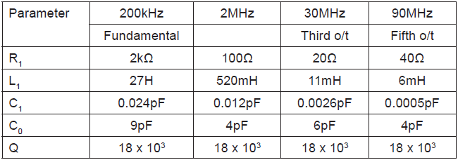 晶體可以由制造商在fr校準(zhǔn),在fr,晶體看起來是電阻性的(或者fs,非常接近fr),或者與電容性負(fù)載諧振,當(dāng)然,在那里晶體必須看起來是電感性的.后一種情況稱為負(fù)載諧振,一般用符號(hào)F1表示;更具體地,符號(hào)f30將例如表示晶體與30pF電容負(fù)載諧振的頻率.