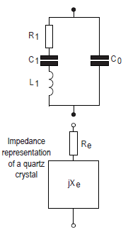 當(dāng)施加電壓的頻率接近石英片的機(jī)械諧振頻率之一時(shí),振動(dòng)的幅度變得非常大.伴隨的位移電流也增加,因此器件的有效阻抗在幅度上減小.隨著頻率在諧振附近變化,阻抗的快速變化是石英晶體諧振器在晶體振蕩器中用作頻率控制元件的關(guān)鍵因素.