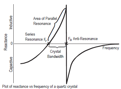 在電學(xué)上,石英晶體可以由圖1的等效電路表示,其中串聯(lián)組合R1,L1和C1表示壓電效應(yīng)對(duì)阻抗的貢獻(xiàn),C0表示電極之間的分流電容以及任何雜散電容.電感L1是石英質(zhì)量的函數(shù),而電容C1與其硬度相關(guān)聯(lián).電阻R1由石英和安裝裝置中的損耗引起.等效電路的參數(shù)可以測(cè)量到大約1%的精度.等效電路的電抗-頻率圖如圖2所示.有許多有關(guān)晶體性能的公式;第一個(gè)是fs.這是晶體串聯(lián)諧振的頻率,由下式給出: