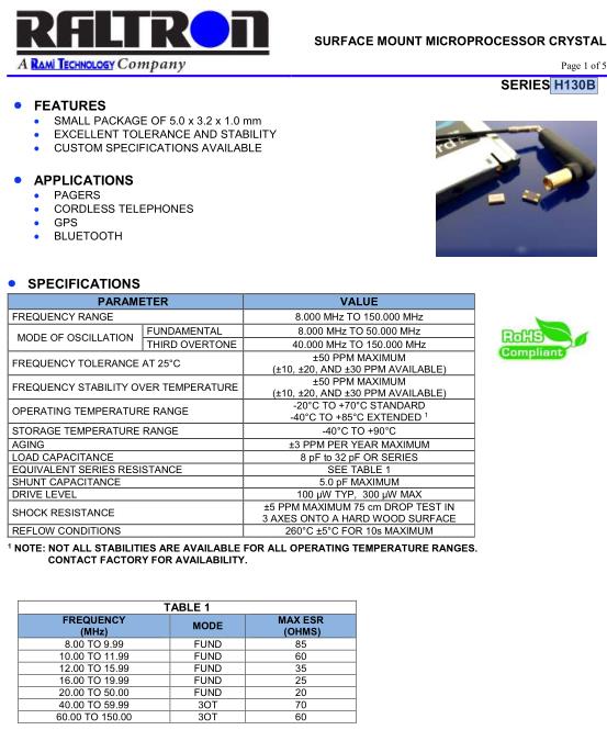 Raltron晶振自成立多年來,公司致力于石英晶體,貼片晶振,石英晶體振蕩器,有源晶振的研究和開發,使得石英晶體,石英晶體振蕩器的技術不斷創新,研發出不計其數的優秀產品.拉隆晶振,H130B晶振,H130B-24.000-18-TR晶振.