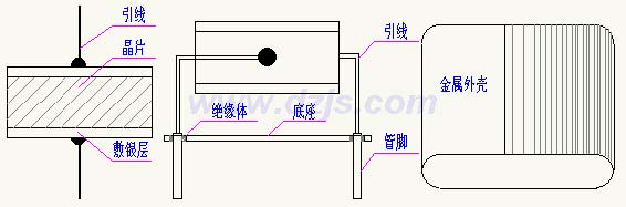 石英晶體振蕩器是利用石英晶體(二氧化硅的結(jié)晶體)的壓電效應(yīng)制成的一種諧振器件,它的基本構(gòu)成大致是:從一塊石英晶體上按一定方位角切下薄片(簡(jiǎn)稱為晶片,它可以是正方形、矩形或圓形等),在它的兩個(gè)對(duì)應(yīng)面上涂敷銀層作為電極,在每個(gè)電極上各焊一根引線接到管腳上,再加上封裝外殼就構(gòu)成了石英晶體諧振器,簡(jiǎn)稱為石英晶體或晶體、晶振.其產(chǎn)品一般用金屬外殼封裝,也有用玻璃殼、陶瓷或塑料封裝的 .為了防止 Ag電極被氧化 ,一般在封裝時(shí)充入 N2.下圖是一種金屬外殼封裝的石英晶體結(jié)構(gòu)示意圖.