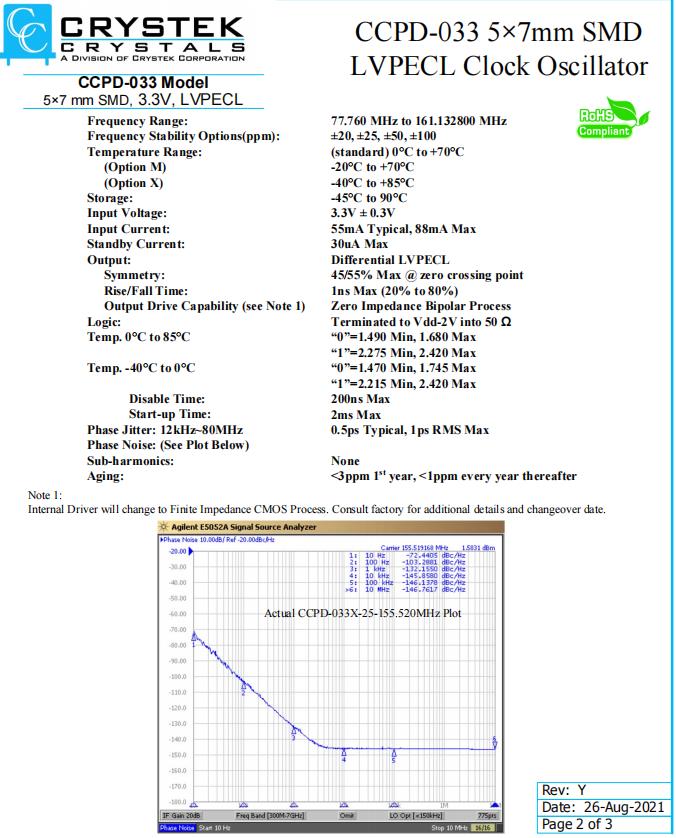 | CVSS-945-125.000 | CRYSTEK振蕩器 | CVSS-945 | VCXO | 125MHz | - | 0°C ~ 70°C |