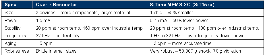 表1:石英晶體振蕩器與SiT15xx微機電系統振蕩器的匯總比較