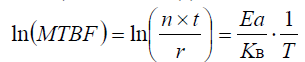 為了研究可靠性靜態高溫儲存與動態老化對Ea的差異性,該篇文章亦參考了軍標規范的MTBF失效法[8]來求取高溫儲存的Ea,公式(9)為阿瑞尼斯的古典方程