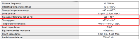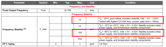 表1:石英基32.768千赫XTAL的頻率穩(wěn)定性規(guī)格